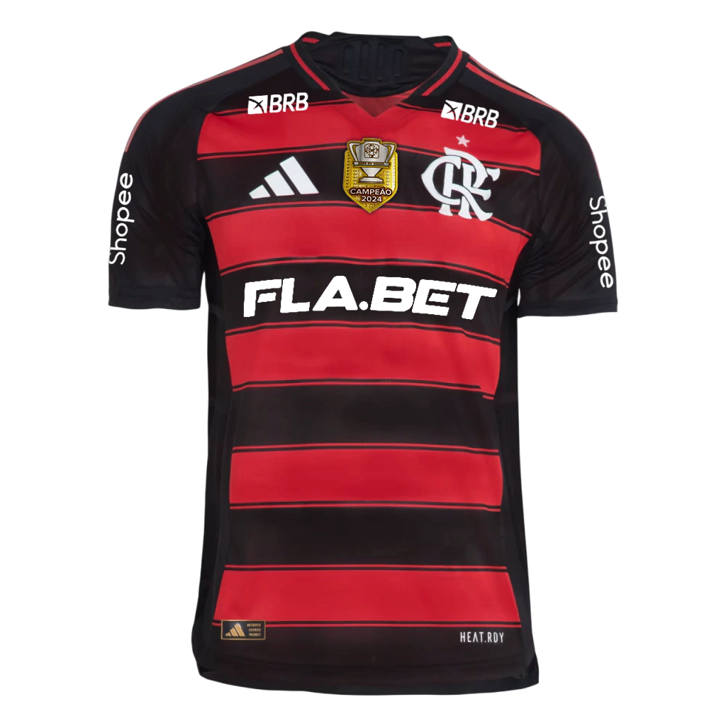 A Camisa Flamengo I 25/26 C/Patrocínios e Patch Campeão Copa do Brasil - Jogador Adidas Masculina Rubro-negra é a versão idêntica à utilizada pelos atletas em campo, trazendo o máximo em performance, leveza e autenticidade. O manto celebra o título da Copa do Brasil, com o patch oficial de campeão aplicado na manga e todos os patrocínios oficiais, compondo o visual completo do Mengão em sua versão mais nobre.