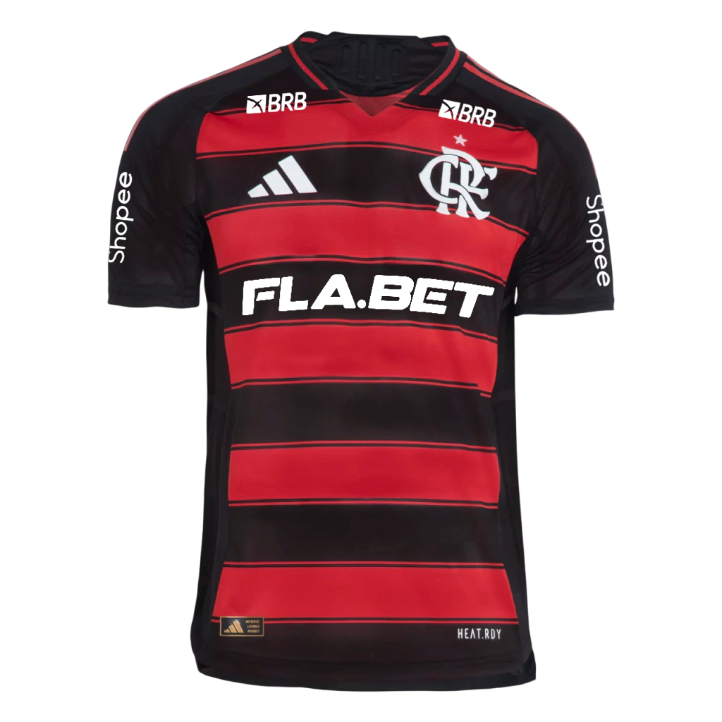 Camisa Flamengo I 25/26 C/Patrocínios e Patch Campeão Copa do Brasil - Jogador Adidas Masculina - Rubro-negra