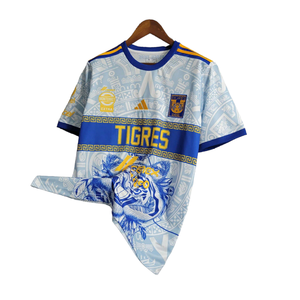 Camisa Tigres do México Edição Especial 23/24 - Torcedor Adidas Masculina - Detalhamento com tigre em azul e amarelo